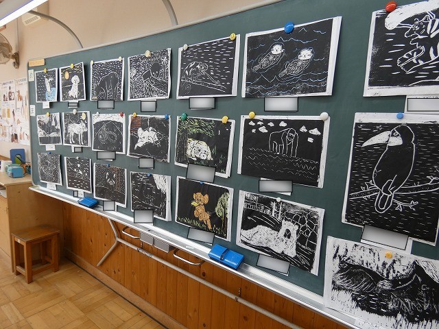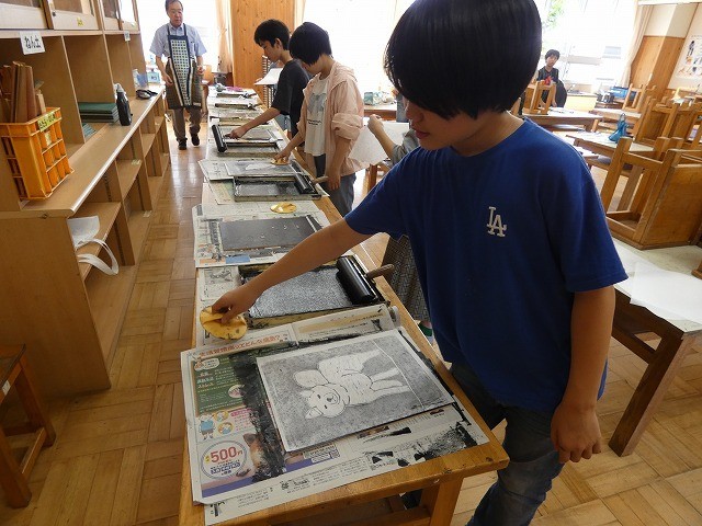 6年生が図工の時間に取り組んでいる版画が、まもなく完成です。