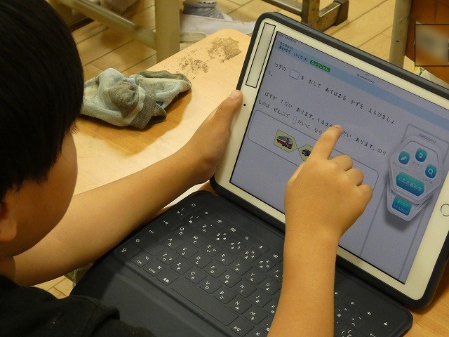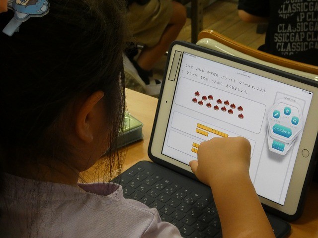 1年生もタブレット端末に入っている学習支援ソフトを活用しています。