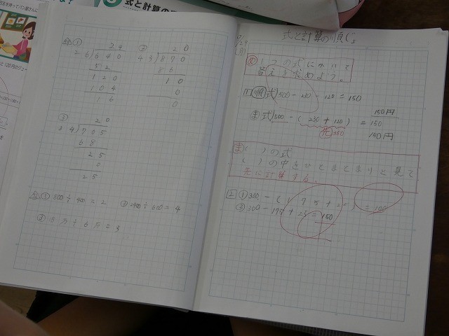 子どものノートを見ると、わり算の筆算は位をしっかりとそろえて書いてあります。