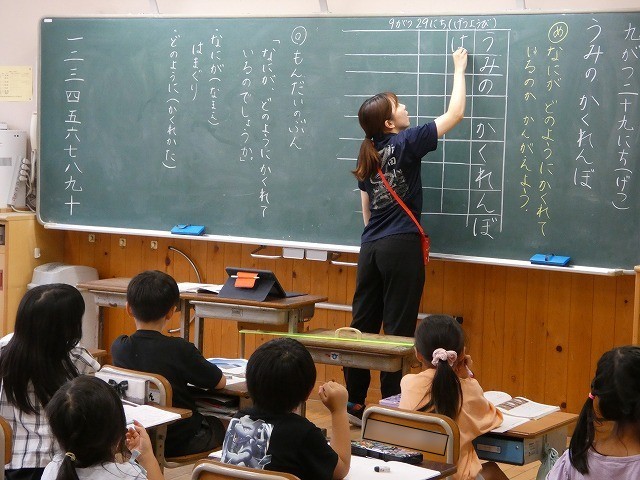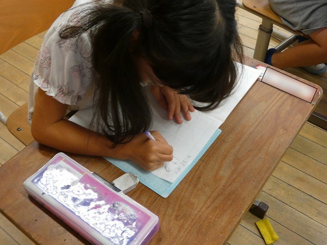 子どもたちは、板書を見て、ノートに同じように書いています。