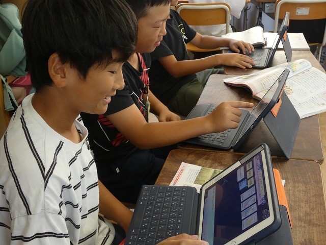 ICTを活用して他の友達の学習状況を参照したり、学習方法を自分で選択したりしながら、自律的に学ぶ子どもを育てています。