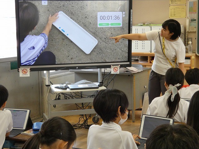 雨が降った後の写真を電子黒板に映して見せたので、子どもたちも気付きを再度確認することができていました。