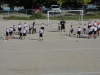 その後、事前に決めておいた役割(地震により泣いてパニックになる子、自力で歩けるがけがした子、歩けない子、緊急対応が必要な子など)の子どもをどうやって救援するかという訓練を行いました。