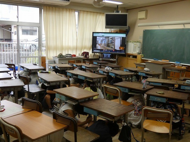 授業中に地震が発生し、実際に起き得る状況に対応するための訓練です。