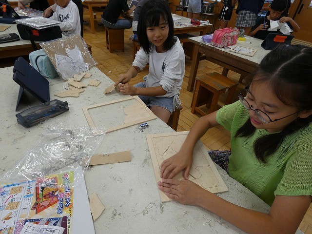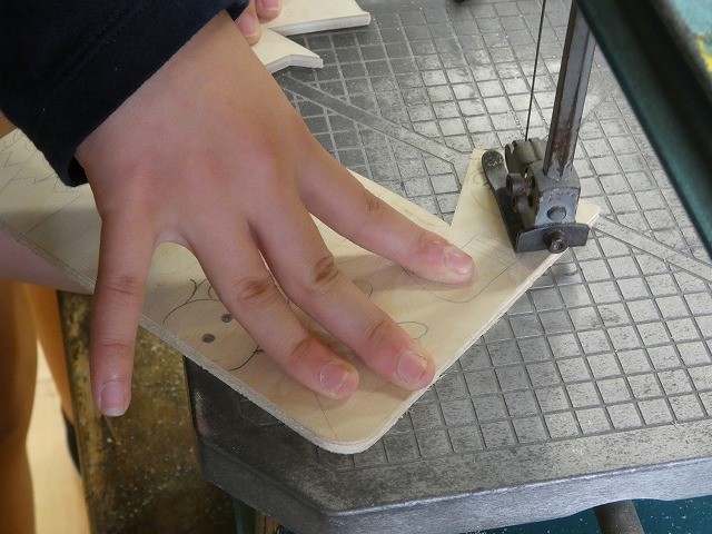 板に下書きを書いて、電動糸のこを使って切り分けていきます。