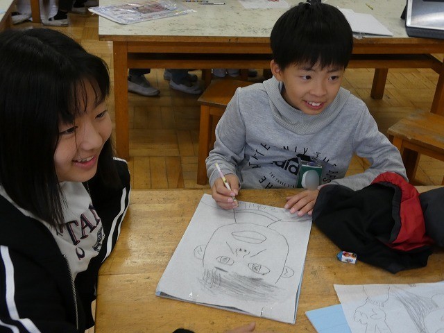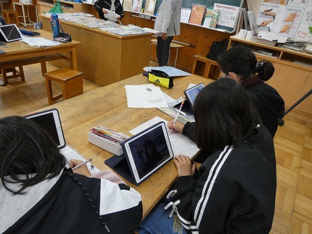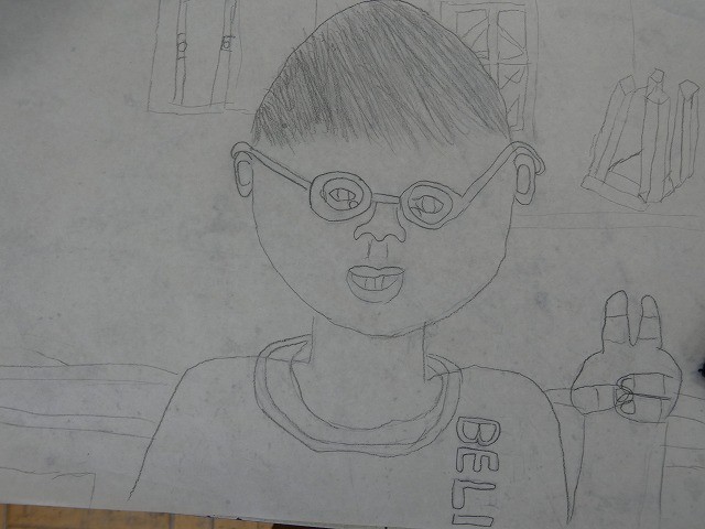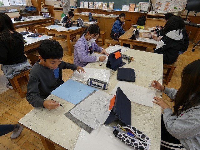 自分の顔をタブレットで撮影し、下書きを書きました。
