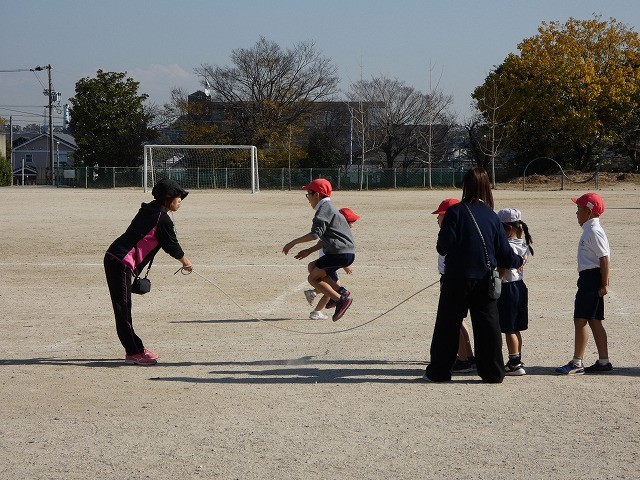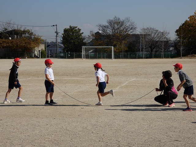「長なわできる?」と聞くと、「得意だよ!!」との返答。