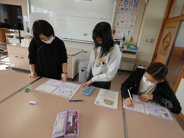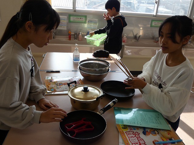 6年生の家庭科では、次回行う調理実習に向けて準備を進めてました。