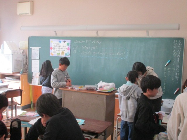 3年生では、友達などのお祝いや日頃の感謝の気持ちを伝える「グリーティングカード作り」に取り組んでいました。