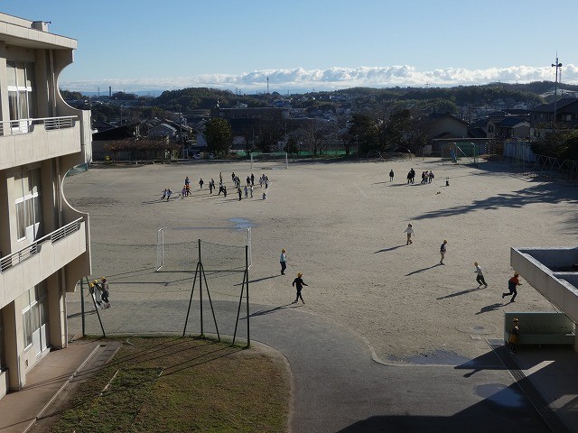 運動場ではドッジボールや鬼ごっこを、教室では自分たちで考えたレクをしています。