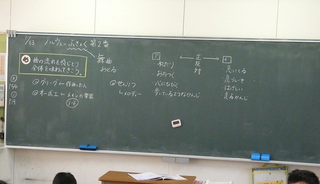 曲の流れを感じ取り、全体を味わって聞くことがめあてです。