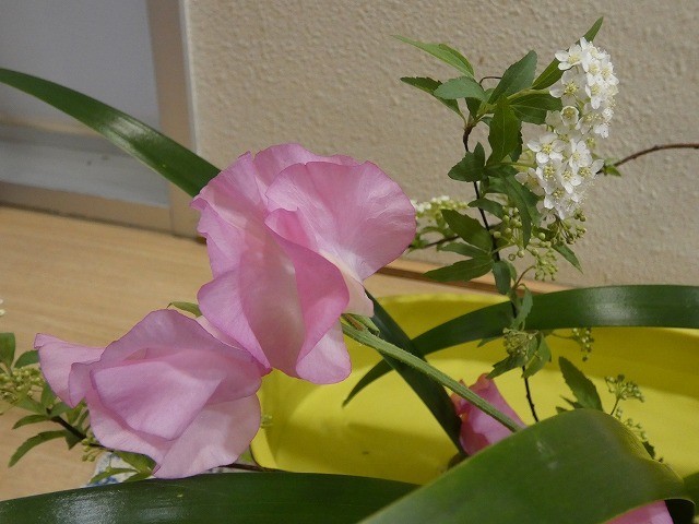 4枚目は、青麦、小手毬(こでまり)、著莪(しゃが)、スイートピーです。