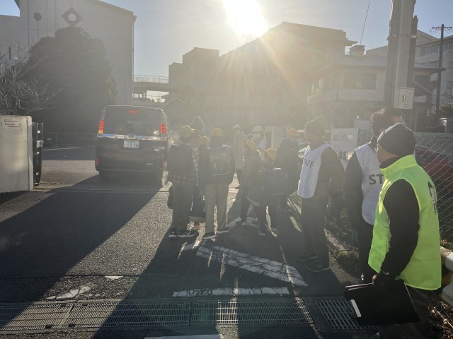 寒い中、子どもたちと同じ時間帯に徒歩で学校まで来ていただき、通学路の危険箇所を調べてくださいました。
