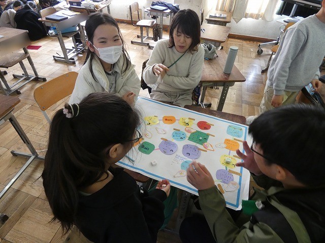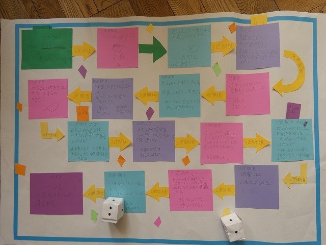 「人の誕生」などについて学んだことを、すごろくにして表していました。