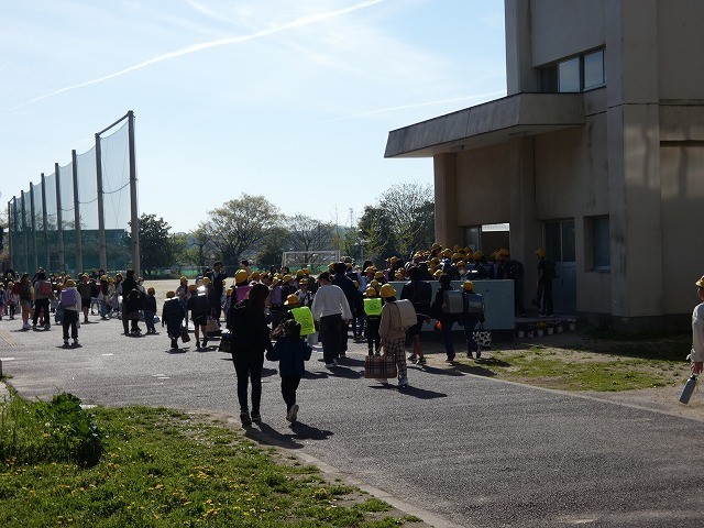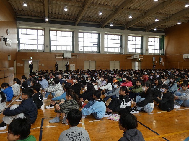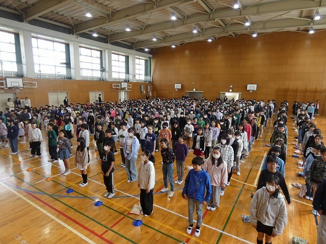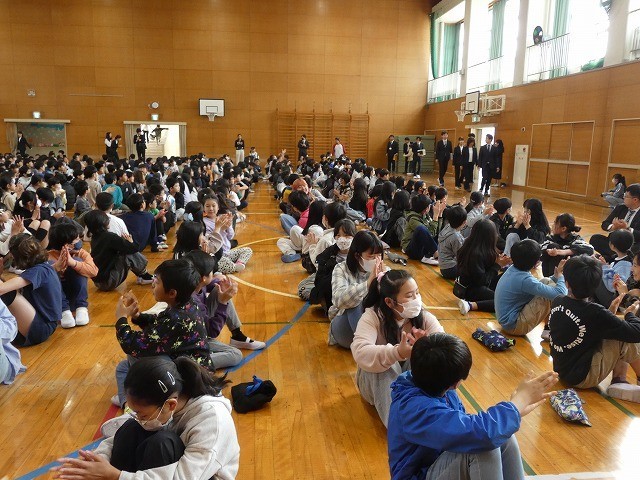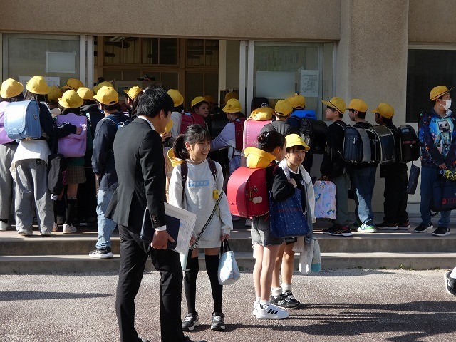 新しい教室に入り、その後体育館に移動しました。