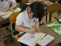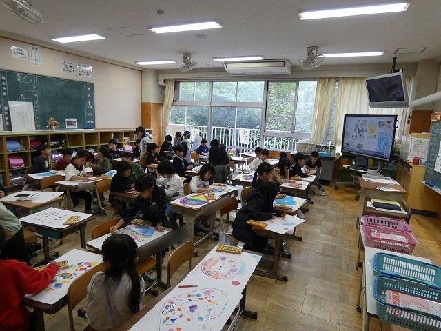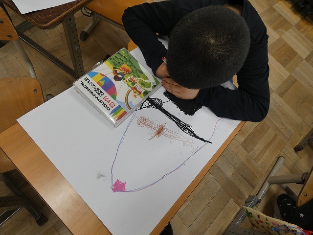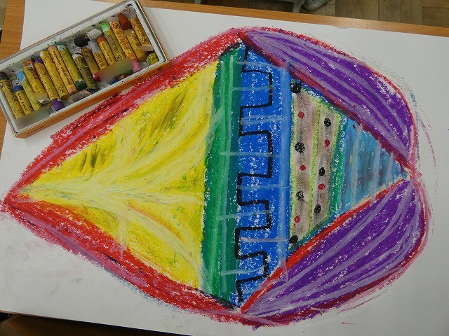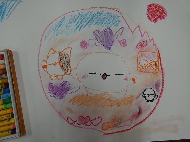 クレヨンやクーピーを使って、写真のように色の塗り方を工夫しています。