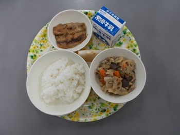 ごはん、ちくぜん煮、サンマの蒲焼き