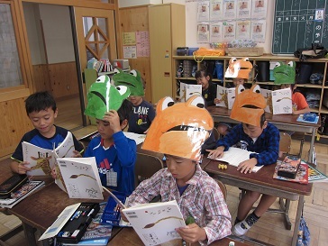 国語では「お手紙」を学習しています。がまくん・かえるくんの会話を中心に,グループごと読み方の工夫を考えました。