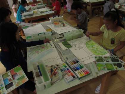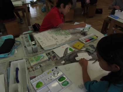 4年生の図工は「物語の世界」を学習しています。題材は一学期に勉強した国語の「白いぼうし」です。みんな想像を膨らませて描いていました。