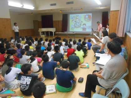 本日5時間目に、大ホールで総合的学習の時間の授業として「認知症について」の講話を聞かせていただきました。多くの講師の方々による、プロジェクターを使った紙芝居をしていただきました。出てくる登場人物の声をそれぞれの講師の方が担当して話されていたので、とても分かりやすく、臨場感のある話だったと感じました。