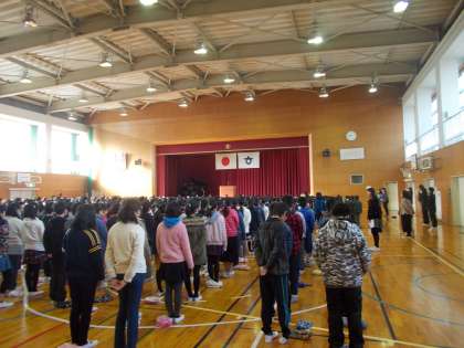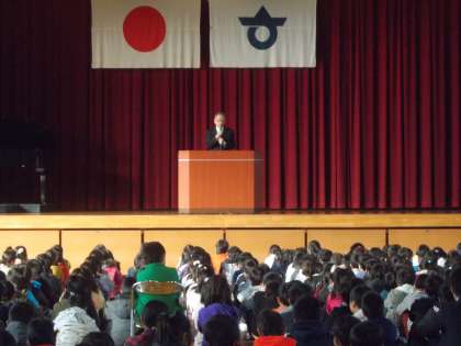 1月6日(金),3学期の始業式が行われました。校長先生からは,「自分に厳しく,他人にやさしく,自分のいいところを見つけよう」とお話しいただきました。児童会役員の児童の2名が,3学期にがんばりたいことを一人一人発表してくれました。入場から終わりまで静かに臨むことができ,児童のやる気にあふれる始業式となりました。