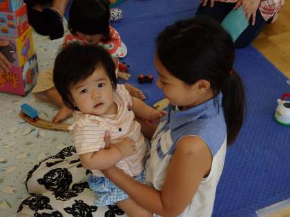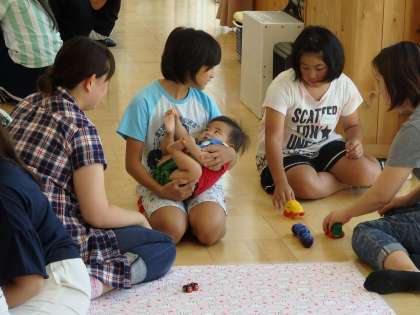 赤ちゃんとのふれあい体験の様子です。