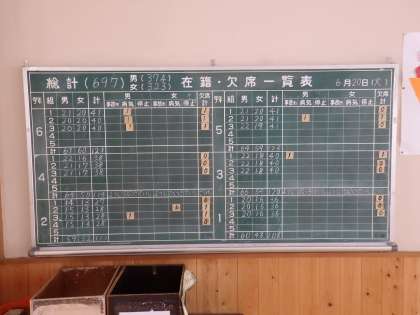 本日の欠席は,全校697名中7名でした。体調不良で欠席している子も早く良くなって登校できるといいですね。