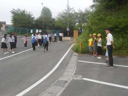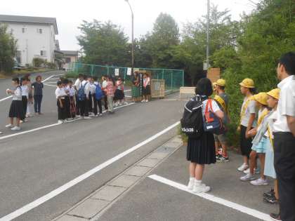 児童会役員の児童が朝から東部中学校に出かけて,中学校と合同のあいさつ運動を行いました。中学生の皆さんも大きな声であいさつをしてくれました。
