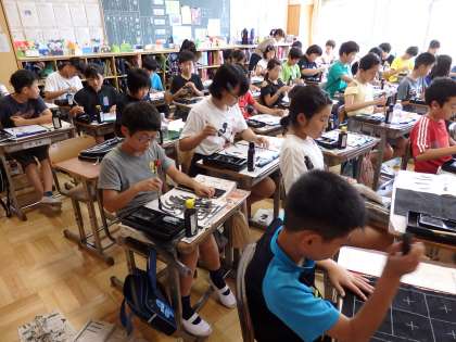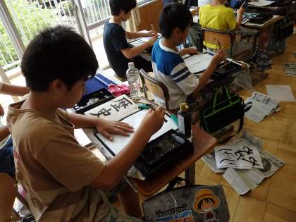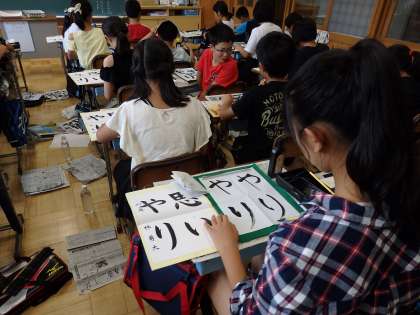 6年生の書写(毛筆)の時間です。集中して取り組みました。