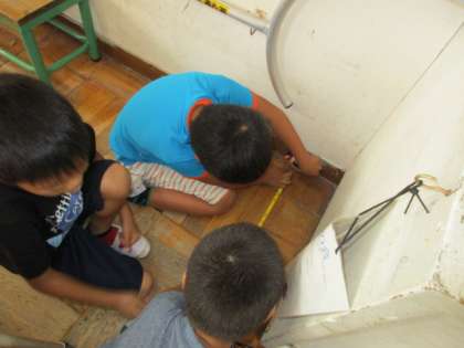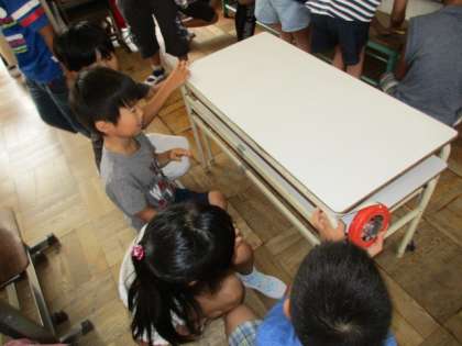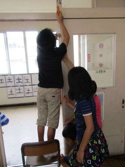 3年生の算数の時間の様子です。巻き尺を使って,教室にの長さや教室にある物の長さをグループで測りました。予想していた長さと同じくらいだと喜び,異なっていたら残念がったりしていました。授業が終わっても友達に声をかけて,一緒に長さ計測をする姿が見られました。これからも,どんどん「長さ」を実感してくださいね。