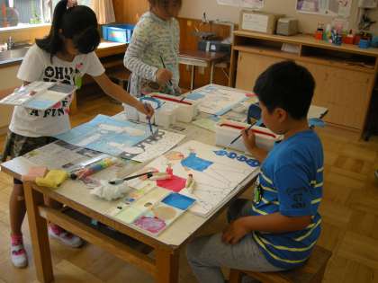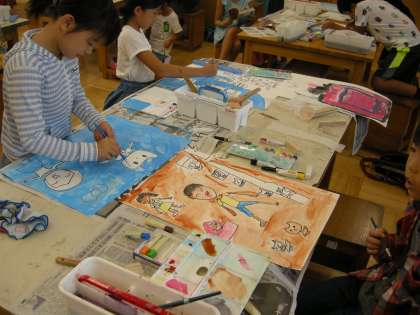 3年生の図工の時間です。うれしかった思い出を表現します。