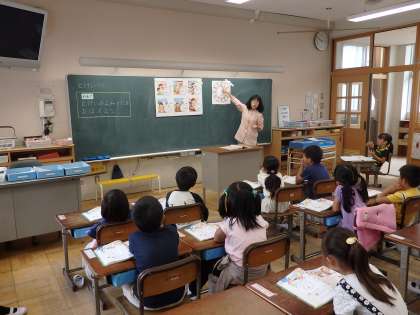 1年生の算数の時間です。とけいの見方を学習します。