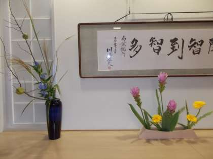 左:実木瓜(みぼけ)、竜胆(りんどう)、矢羽根薄(やばねすすき)