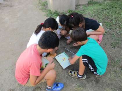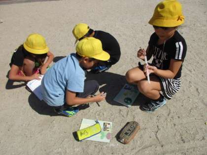 実際に地面を手で触って確かめたり,温度計を使って,温度を調べたりしました。
