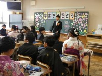 朝会では,保健主事の進藤先生の「インフルエンザ」に関するお話しの後,本校の登龍門祭の翌日に行われる「山車曳き」の昨年度の様子を動画で紹介されました。また。当日行うお囃子も発表しました。山車曳きへの参加希望者が少ないようですので,ぜひたくさんの子どもたちが参加できるといいですね。
