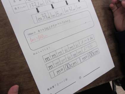 1月22日(月)2年生 算数 100cmをこえる長さ