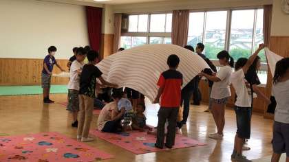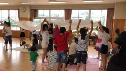 赤ちゃんふれあい体験の様子です。「いっぽんばし」や「布あそび」を行いました。