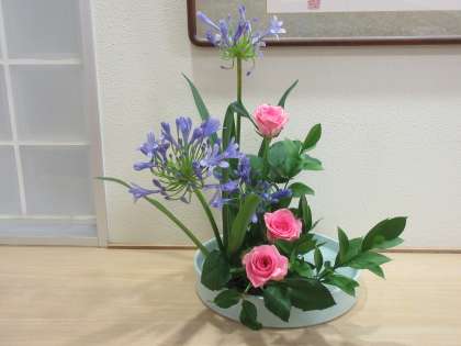アガパンサス、薔薇、ルスカス