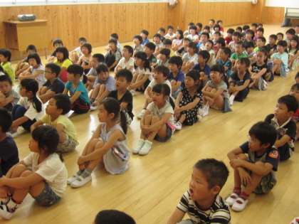 『たなばた』の歌を歌い,七夕集会が始まりました。願い事の発表では「サッカー選手になりたい」「科学者になりたい」など,いろいろな願い事がありました。そのあとは,七夕にまつわる絵本の読み聞かせがありました。