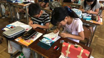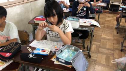 5年生の家庭科の時間です。裁縫に取り組みます。