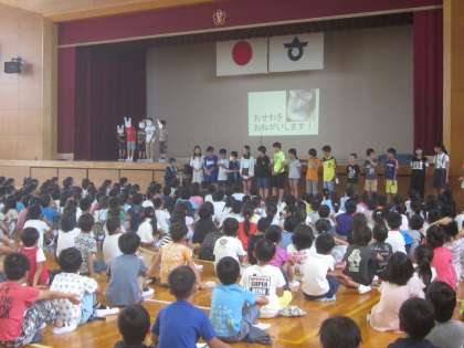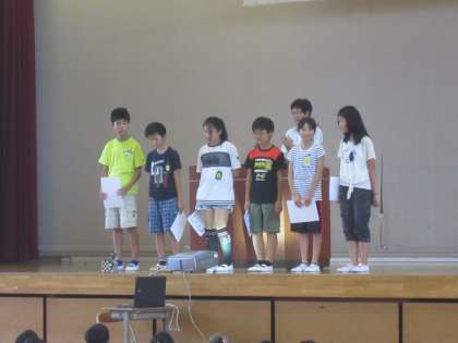 朝会では「よい歯の表彰」などの後に,校長先生から「努力すれば夢は叶う」についてのお話がありました。また,飼育委員会からのうさぎのショコラについて発表がありました。