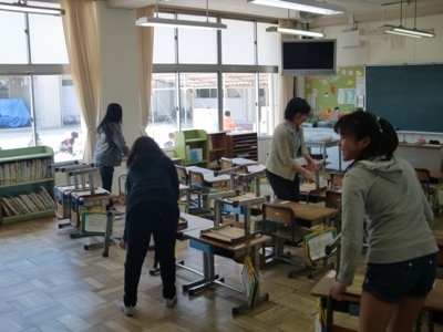 1年生が帰った後に,6年生は1年生の教室掃除の手伝いを行っています。きれいな教室で勉強ができるように一生懸命掃除をしています。早く1年生と一緒に掃除をしたいな。