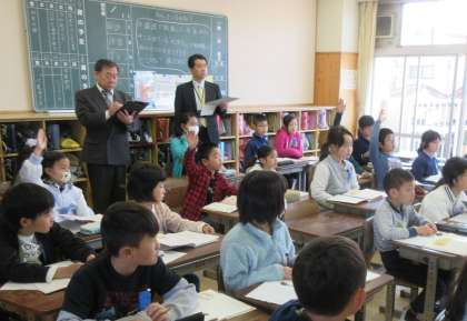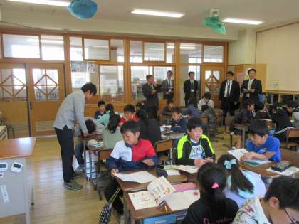 知多市教育委員会からお客様が来校されました。落ち着いた授業の様子を見ていただきました。