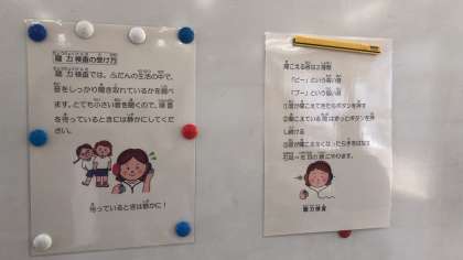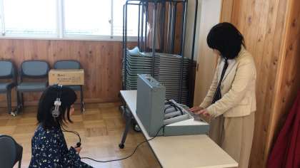 先日の身体測定に続いて,聴力検査を行いました。写真は3年生の様子です。