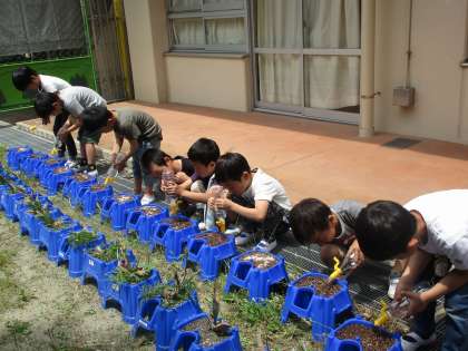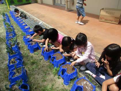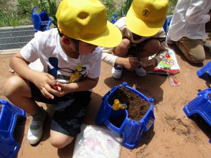 きれいなあさがおが咲くように、心を込めて種を蒔く子どもたちの姿が見られました。