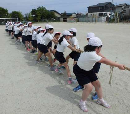 5年生の運動会練習の様子です。今年は綱引きに取り組みます。