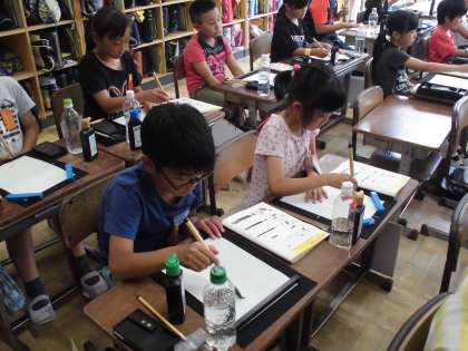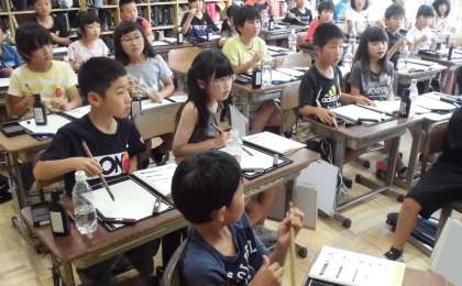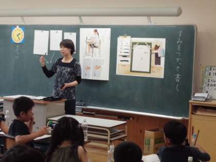 3年生の書写の時間です。初めて墨を使って毛筆に挑戦します。