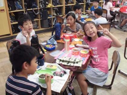 昼食はお弁当です。「いただきます」の時にはおうちの方への感謝をみんなで言ってから食べました。ありがとうございました。