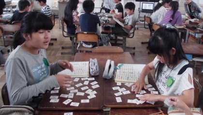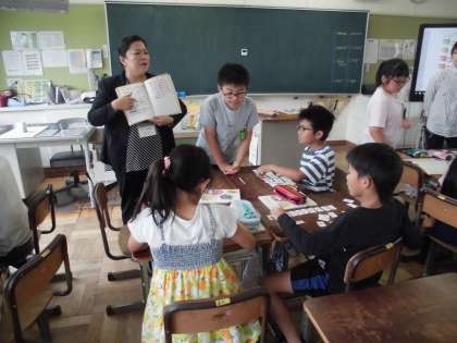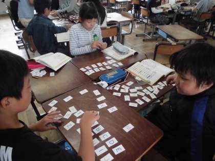 5年生の外国語活動の時間です。アルファベットを組み合わせて単語をつくります。