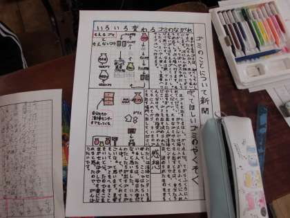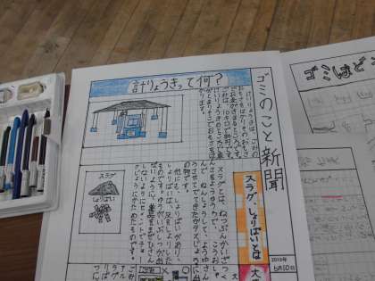 4年生の社会科の時間です。清掃センター,リサイクルセンター見学のまとめとして,新聞づくりに取り組みます。